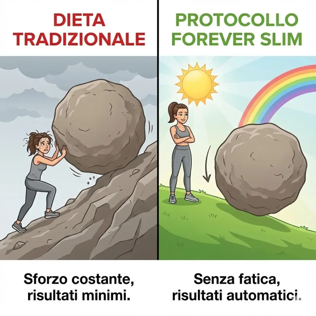 No, e qui sta la rivoluzione. A differenza delle diete da fame che rallentano il metabolismo, Forever Slim lo "riaddestra". Una volta raggiunto il tuo peso forma, il tuo corpo avrà imparato a gestire gli zuccheri in modo diverso. Molte clienti fanno un ciclo di mantenimento ridotto e poi smettono definitivamente, mantenendo i risultati.