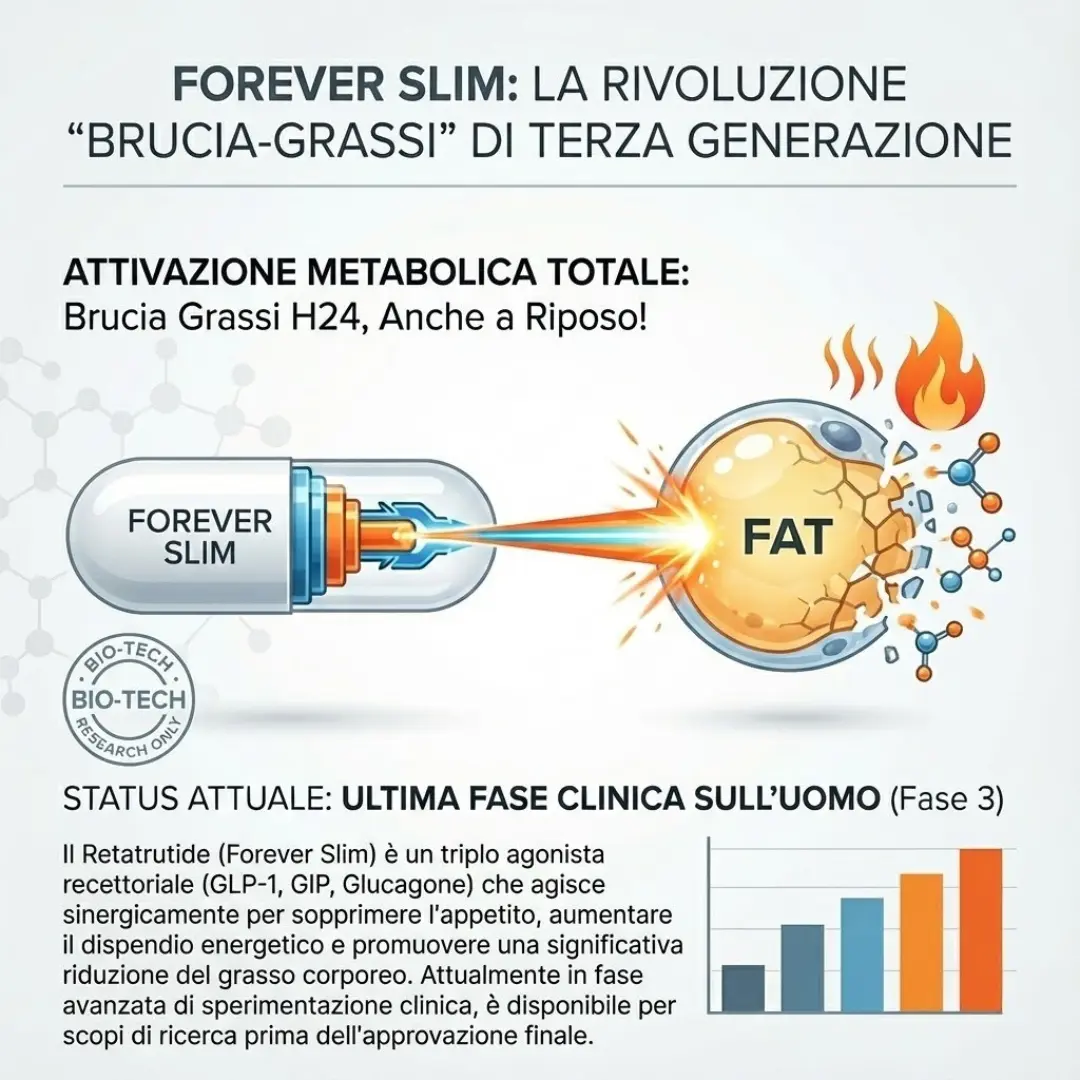 Fino ad oggi, i trattamenti si limitavano a sopprimere la fame. Forever Slim (GLP-3) va oltre. È il primo "Triplo Agonista" al mondo: