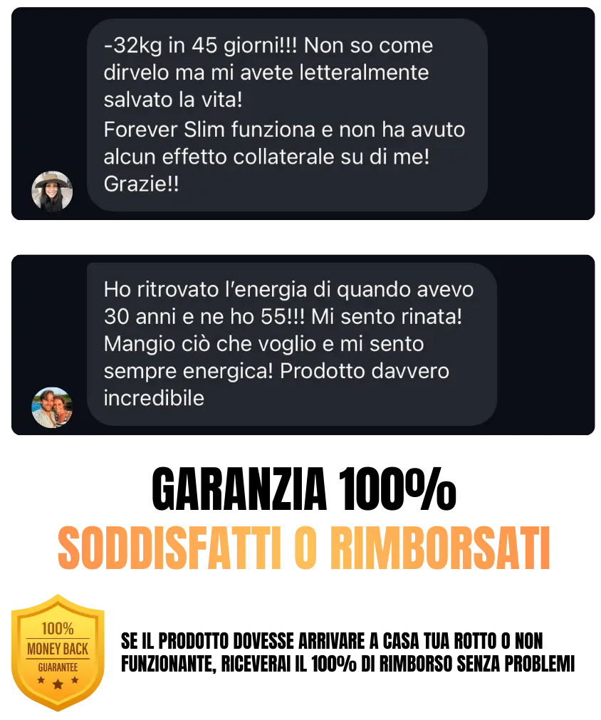 Assolutamente no. La grande rivoluzione di Forever Slim è che è 100% bio-compatibile. A differenza delle vecchie pillole dimagranti che erano "stimolanti" (e portavano tachicardia, agitazione o insonnia), questa molecola lavora in armonia con il tuo organismo, non contro di esso. Non sentirai il cuore battere all'impazzata; sentirai solo una calma lucidità mentale e un livello di energia costante che non provavi da anni.
