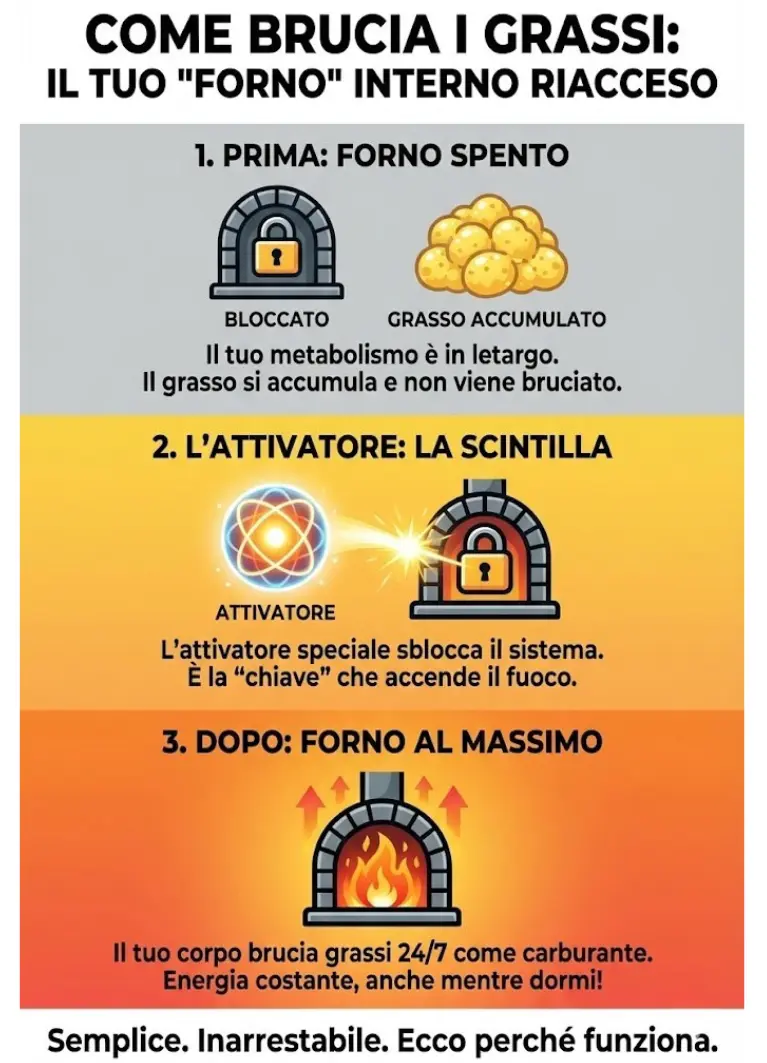 una chiave biologica che entra nel tuo DNA metabolico e accende contemporaneamente 3 interruttori spenti nel tuo corpo.